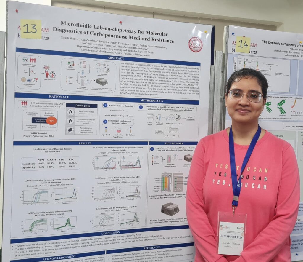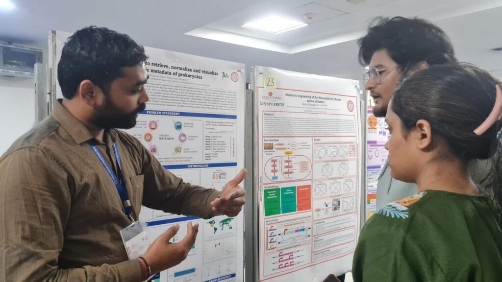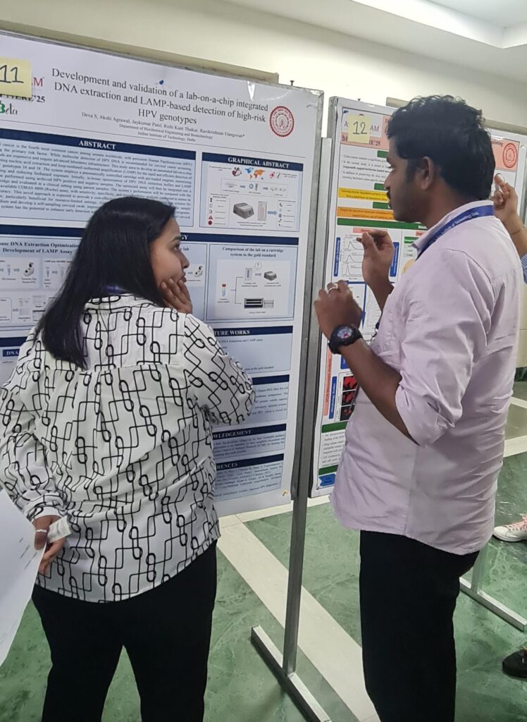Deva, Sonali, Renesa, and Jay from the lab recently presented their research posters at a two-day symposium on Biochemical Engineering and Biotechnology Research and Innovation. Organized by BETA, the departmental society of DBEB, the event brought together experts and students to explore trends in areas like Biomanufacturing and Precision Medicine. A special highlight of the event was a visit to the lab by Dr. Satya, who joined the group to discuss their work and engage with the ongoing research firsthand.