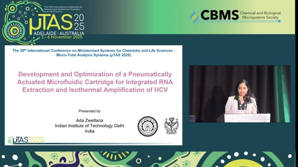 Ada recently presented at the 2025 International Conference on Miniaturized Systems for Chemistry and Life Sciences (µTAS). She delivered an oral presentation titled “Development and Optimization of a Pneumatically Actuated Microfluidic Cartridge for Integrated RNA Extraction and Isothermal Amplification of HCV.” The talk highlighted our progress in creating a seamless, automated platform for Hepatitis C detection, showcasing the integration of complex sample preparation with rapid diagnostic amplification.